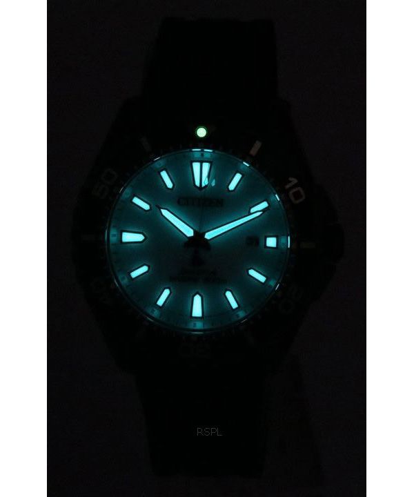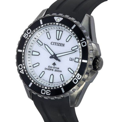 Montre pour homme Citizen Promaster Marine avec bracelet en caoutchouc et cadran blanc Eco-Drive Diver BN0197-08A 200M
