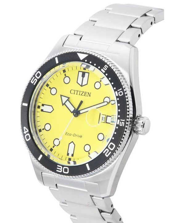 Montre pour homme Citizen Sport Eco-Drive en acier inoxydable avec cadran jaune AW1760-81Z 100M