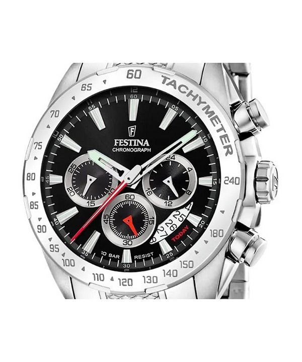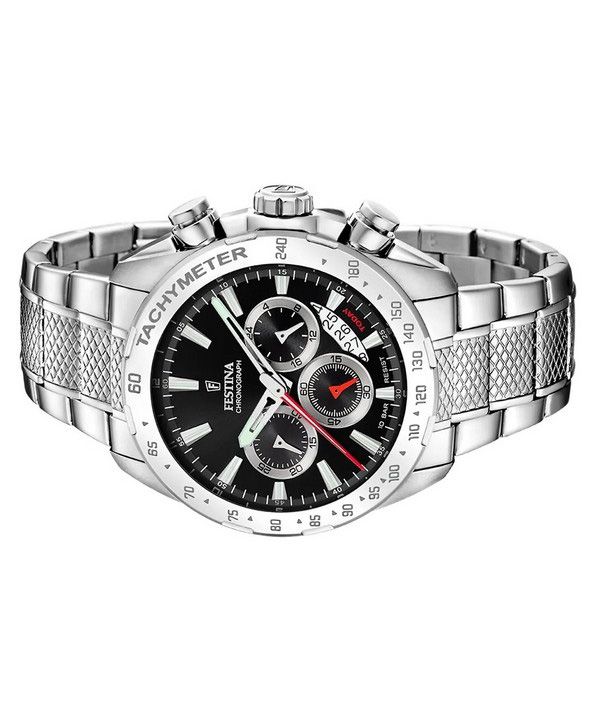 Montre pour homme Festina Chrono Sport en acier inoxydable avec cadran noir et quartz F20668-4 100M