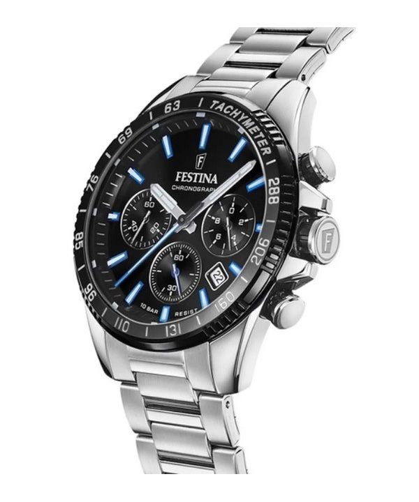 Montre pour homme Festina Timeless Chronographe en acier inoxydable avec cadran noir et quartz F20560-5 100M