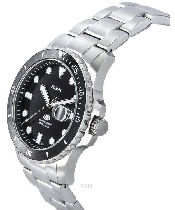 Montre pour homme Fossil Blue Dive en acier inoxydable avec cadran noir et quartz FS6032 100M