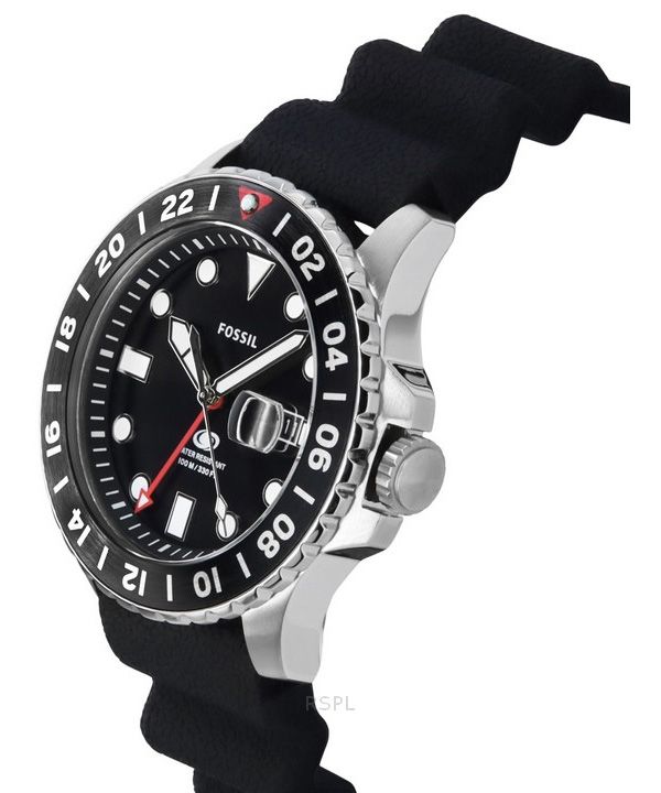 Montre pour homme Fossil Blue GMT avec bracelet en silicone et cadran noir FS6036 100M