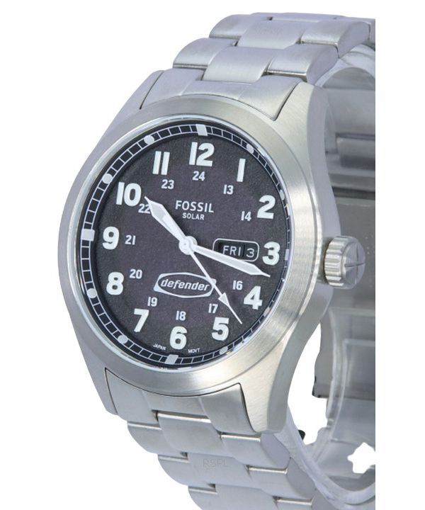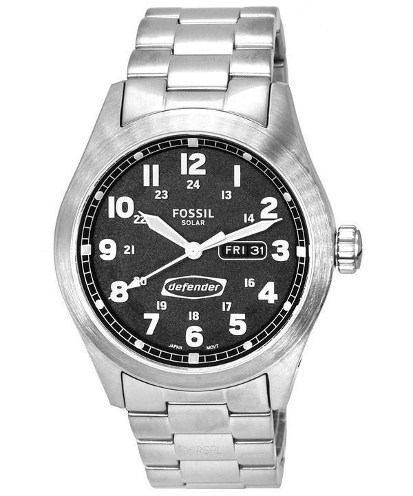 Montre pour homme Fossil Defender à énergie solaire en acier inoxydable avec cadran noir FS5976 100M