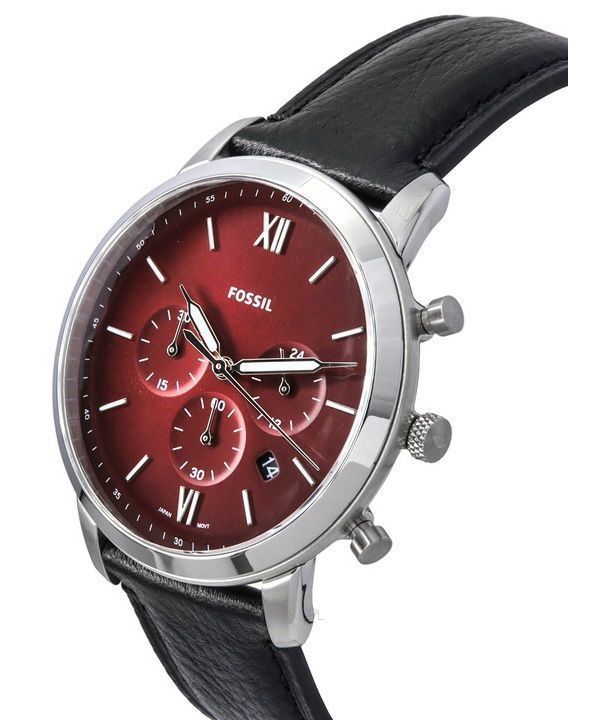 Montre pour homme Fossil Neutra Chronograph Black LiteHide Bracelet en cuir Cadran bordeaux Quartz FS6016