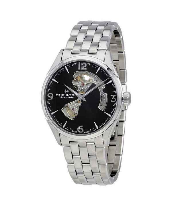 Montre pour homme Hamilton Jazzmaster en acier inoxydable à cœur ouvert et cadran noir automatique H32705131