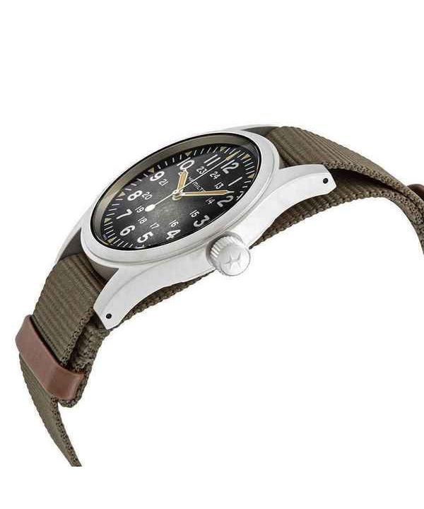 Montre pour homme Hamilton Khaki Field Green avec bracelet en nylon et cadran noir mécanique H69439931