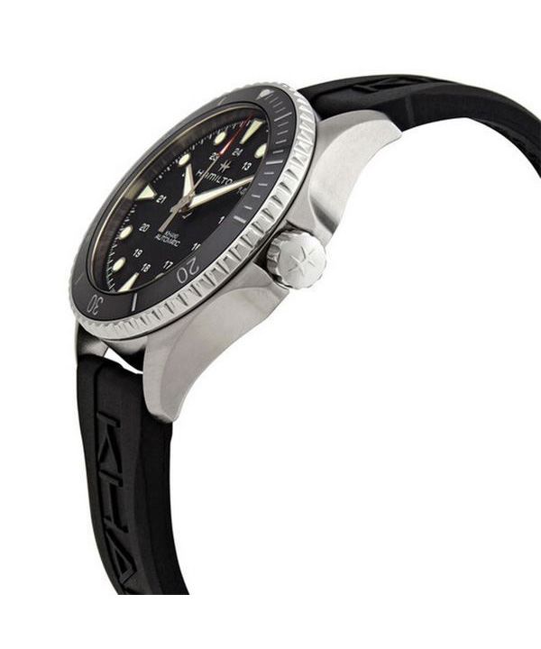 Montre pour homme Hamilton Khaki Navy Scuba bracelet en caoutchouc cadran noir automatique H82515330 300M