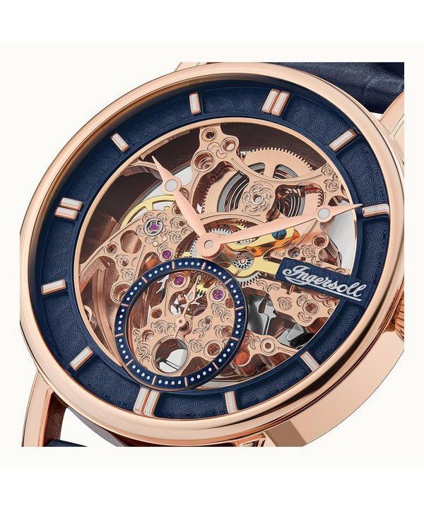 Montre pour homme Ingersoll The Herald avec bracelet en cuir et cadran squelette bleu automatique I00407B