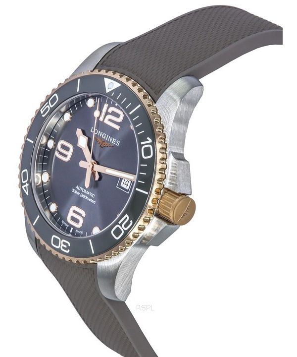 Montre pour homme Longines HydroConquest avec bracelet en caoutchouc et cadran gris Sunray automatique L3.782.3.78.9 300M