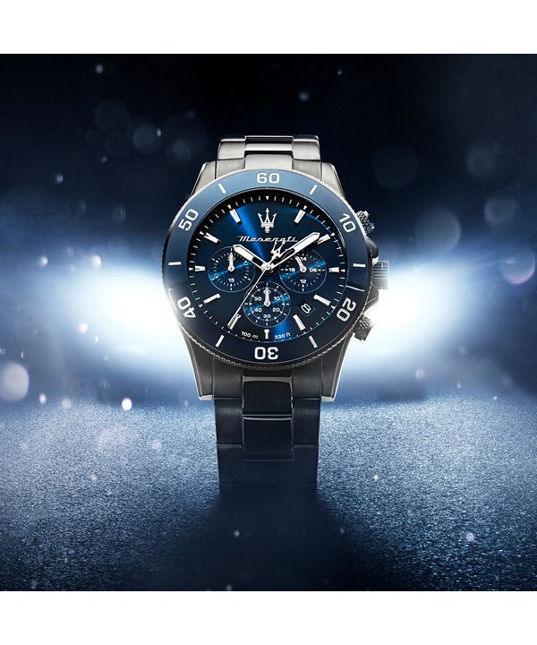 Montre pour homme Maserati Competizione chronographe en acier inoxydable avec cadran bleu et quartz R8873600005 100M