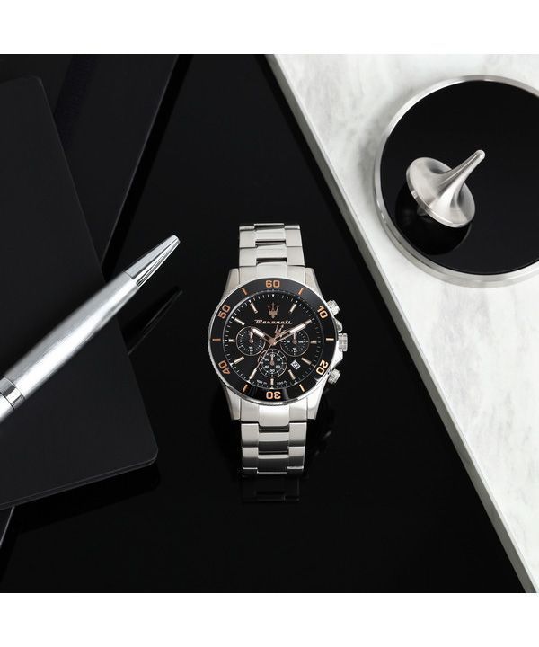 Montre pour homme Maserati Competizione chronographe en acier inoxydable avec cadran noir et quartz R8873600003 100M