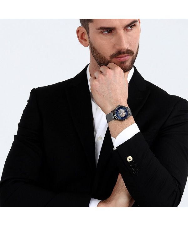 Montre pour homme Maserati Epoca, bracelet en maille d',acier inoxydable, cadran squelette bleu, automatique, R8823118012, 10