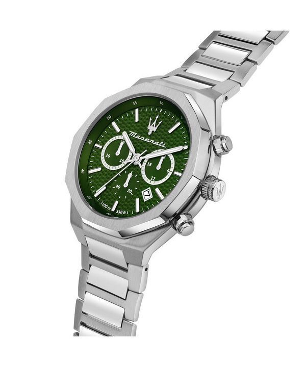 Montre pour homme Maserati Stile Chronographe en acier inoxydable avec cadran vert R8873642011 100M