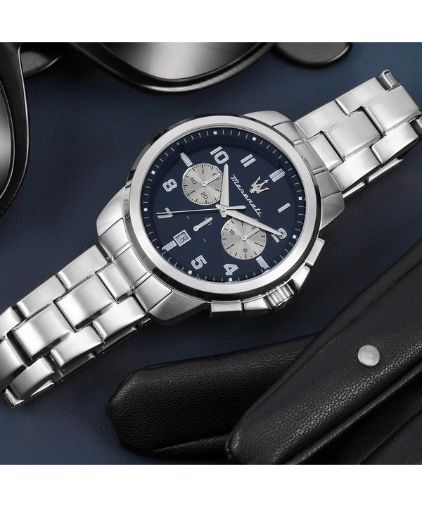 Montre pour homme Maserati Successo Limited Edition chronographe en acier inoxydable avec cadran bleu et quartz R8873621029