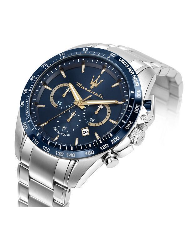 Montre pour homme Maserati Traguardo en édition limitée chronographe en acier inoxydable avec cadran bleu et quartz R8873612052