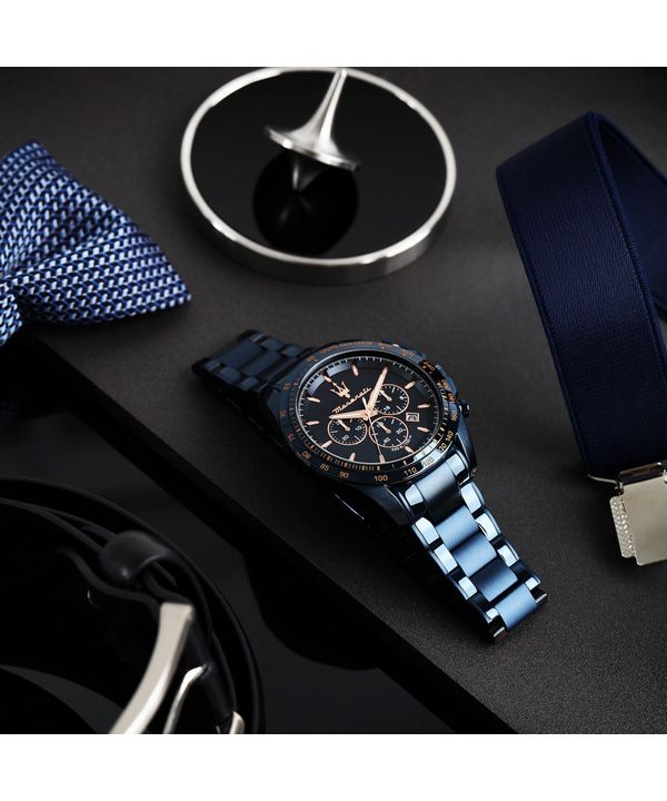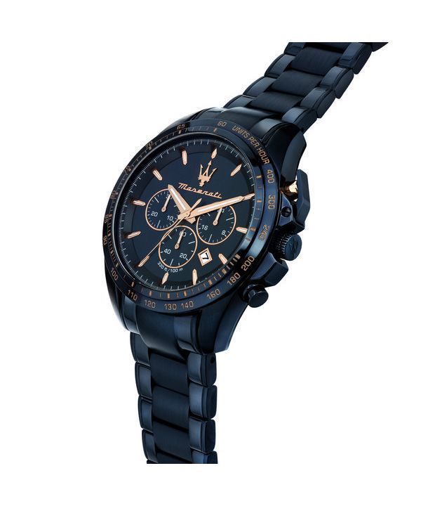 Montre pour homme Maserati Traguardo Sport chronographe en acier inoxydable avec cadran bleu à quartz R8873612054 100M