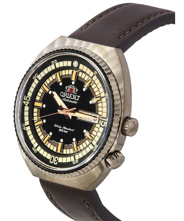 Montre pour homme Orient Neo Classic Sports bracelet en cuir marron cadran noir automatique RA-AA0E06B19B 200M