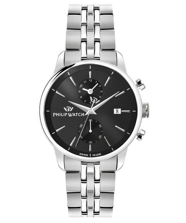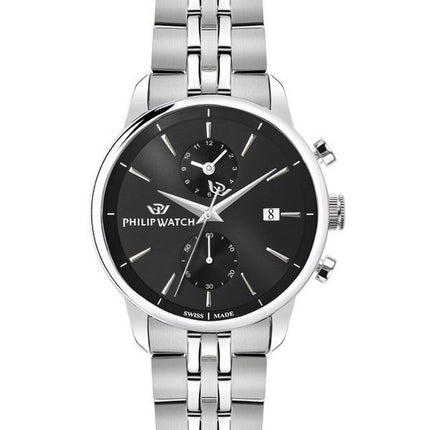 Montre pour homme Philip Watch Anniversary Chronographe en acier inoxydable avec cadran noir et quartz R8273650002 100M