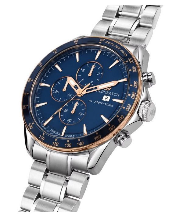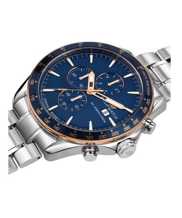 Montre pour homme Philip Watch Blaze chronographe en acier inoxydable avec cadran bleu à quartz R8273995006 100M