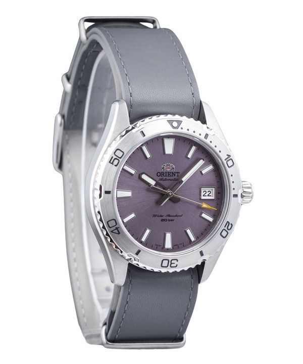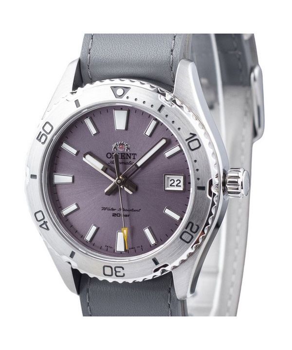 Montre de plongée automatique Orient Sports avec bracelet en cuir et cadran lilas RA-AC0Q07V10B RA-AC0Q07V30B 200 m pour homme