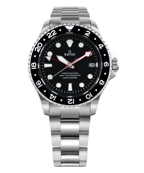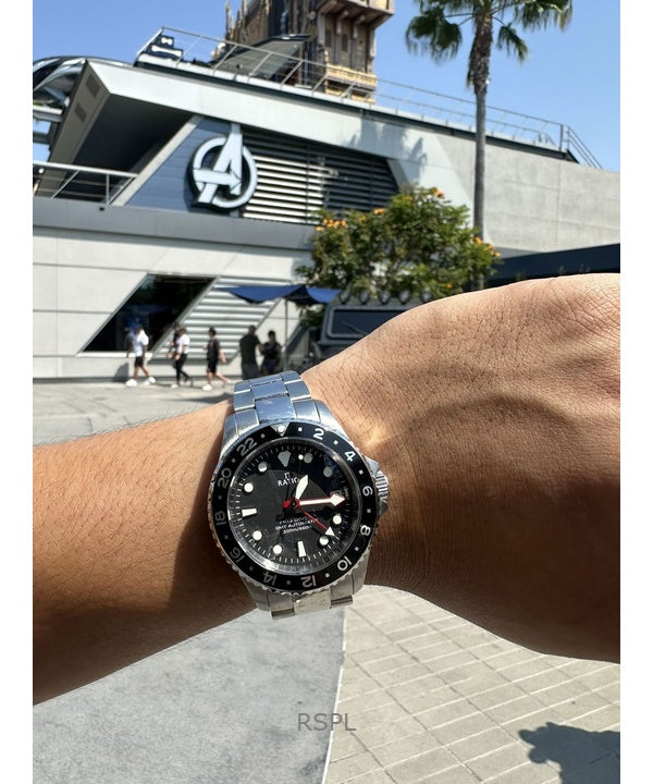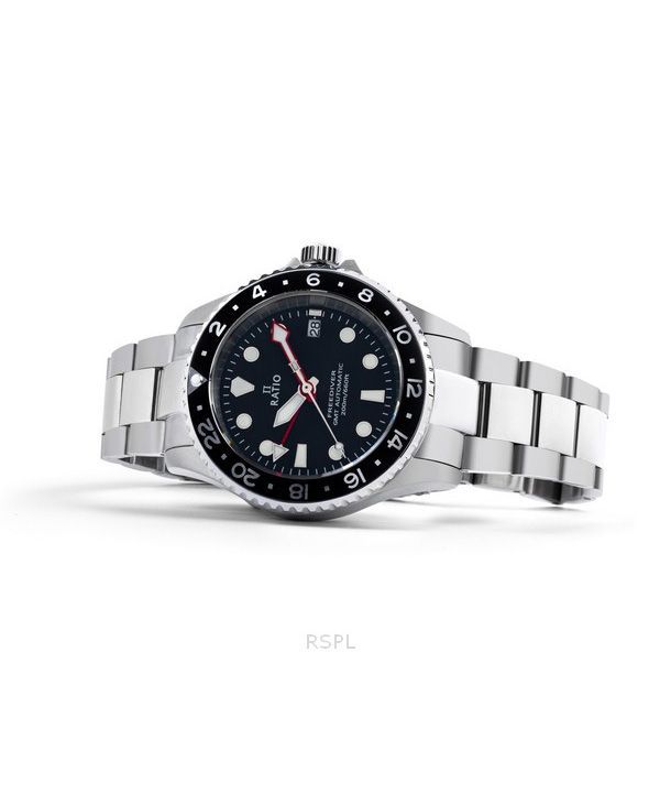 Montre pour homme Ratio FreeDiver GMT Series en acier inoxydable saphir avec cadran noir automatique RTF051 200M