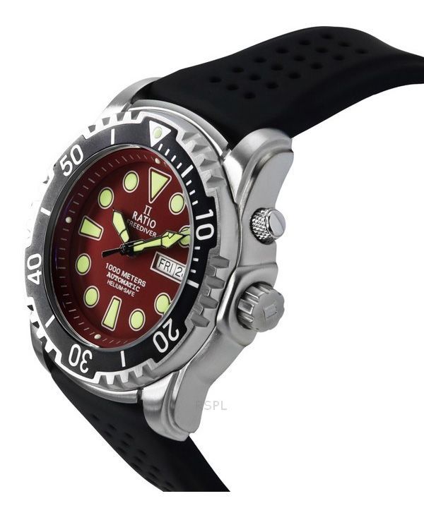 Montre pour homme Ratio FreeDiver Version 02 Helium Safe 1000M Saphir Automatique Cadran rouge 1068HA90-34VA-RED-V02