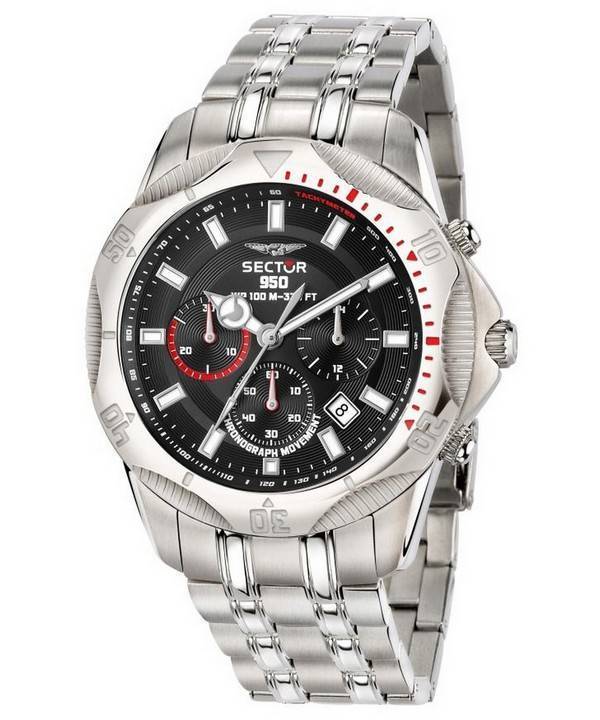 Montre pour homme Sector 950 Chronograph Black Sunray Dial Acier inoxydable Quartz R3273981007 100M