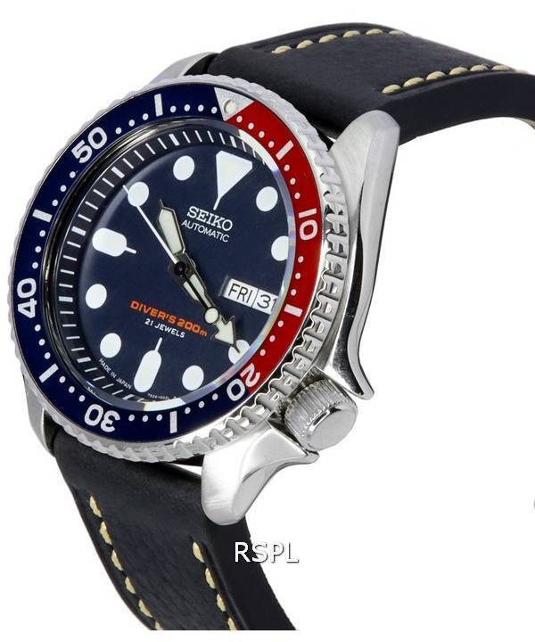 Montre pour homme Seiko Automatic avec rapport de plongée, cuir noir SKX009J1-LS2 200M