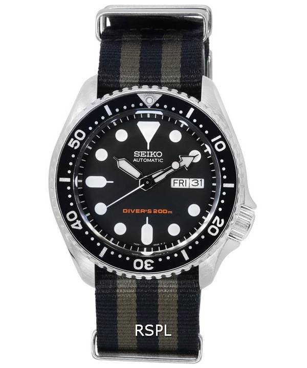 Montre pour homme Seiko Black Dial Automatic Diver SKX007K1-var-NATO21 200M
