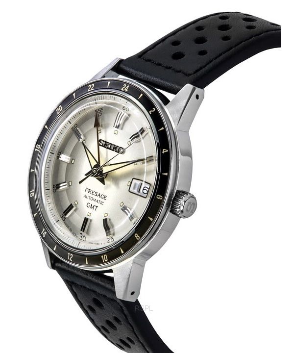 Montre pour homme Seiko Presage Style60's GMT avec bracelet en cuir de veau et cadran gris automatique SSK011J1