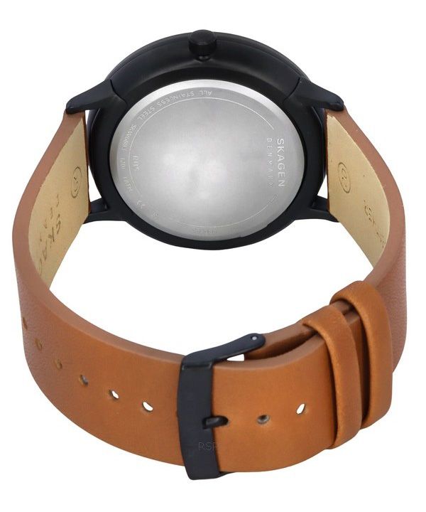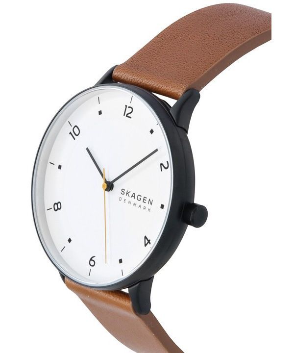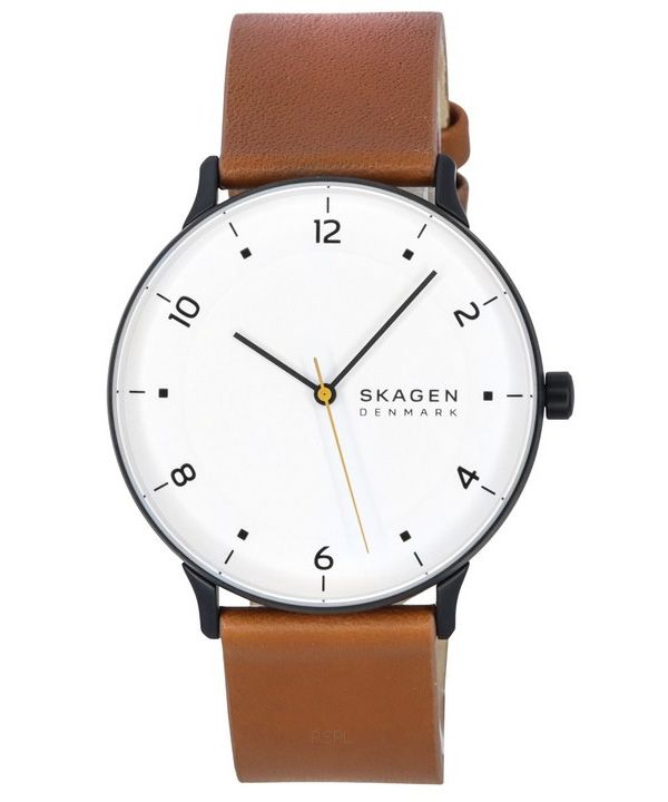Montre pour homme Skagen Riis avec bracelet en cuir marron moyen et cadran blanc à quartz SKW6883