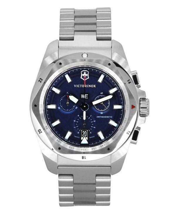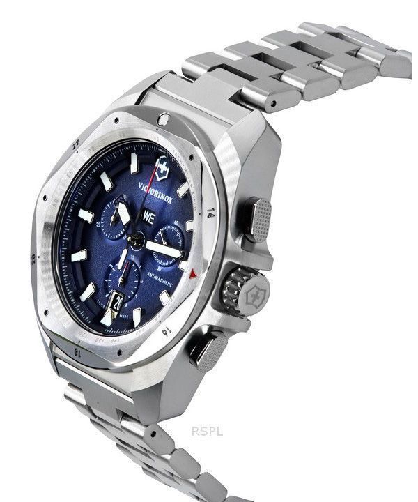 Montre pour homme Victorinox Swiss Army INOX chronographe en acier inoxydable avec cadran bleu et quartz de plongée 241985 200M