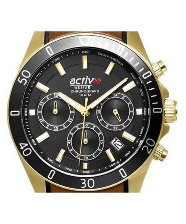 Montre pour homme Westar Activ Chronograph Bracelet en cuir Cadran noir Quartz 90245GPN183 100M