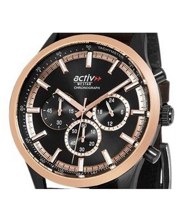 Montre pour homme Westar Activ Chronograph Bracelet en cuir Cadran noir Quartz 90265BPN603 100M