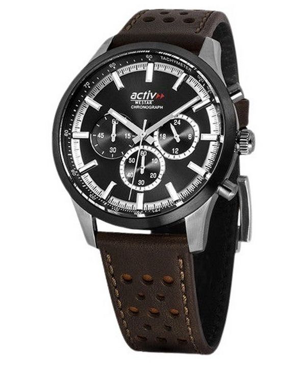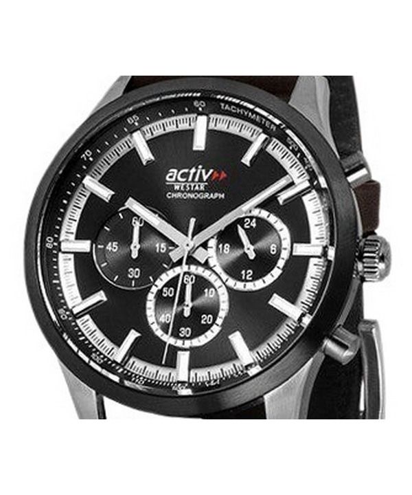 Montre pour homme Westar Activ Chronograph Bracelet en cuir Cadran noir Quartz 90265SBN123