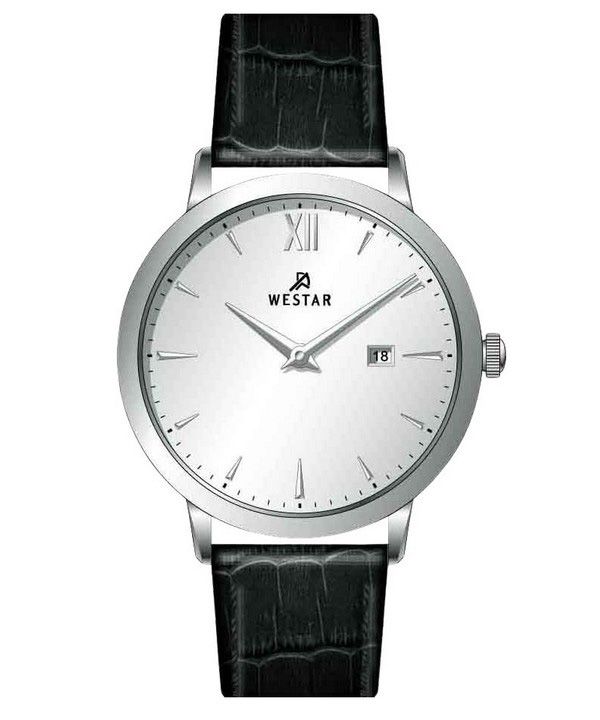 Montre pour homme Westar Profile avec bracelet en cuir et cadran argenté à quartz 50214STN107