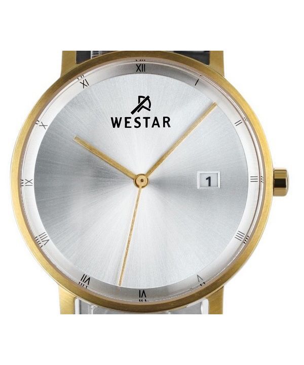 Montre pour homme Westar Profile avec bracelet en cuir noir et cadran argenté à quartz 50221GPN107