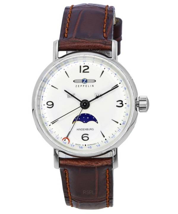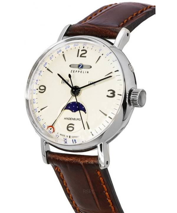 Montre pour homme Zeppelin LZ 129 Hindenburg bracelet en cuir phase de lune cadran beige quartz 80775