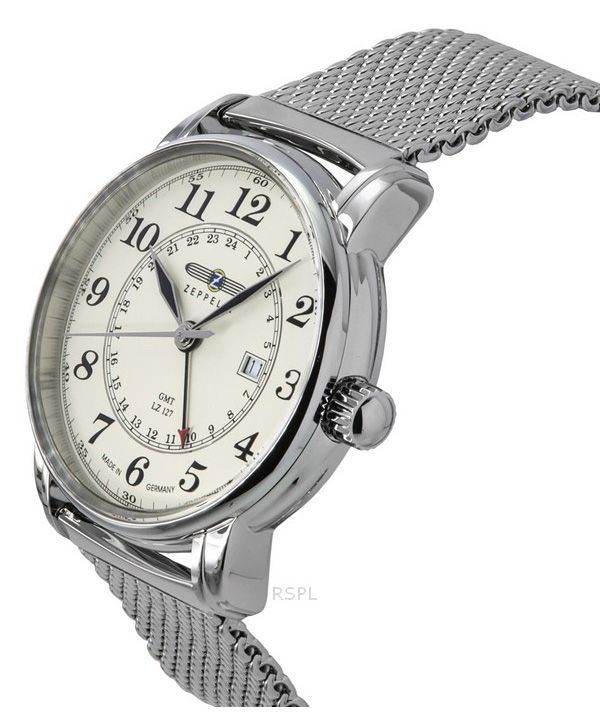Montre pour homme Zeppelin LZ127 Graf GMT en acier inoxydable avec cadran beige et quartz 7642M5