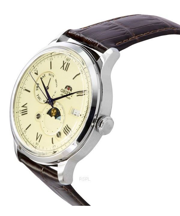 Montre Homme Orient Bambino Version 9 Phase Soleil et Lune Cadran Champagne Automatique RA-AK0803Y10B RA-AK0803Y30B