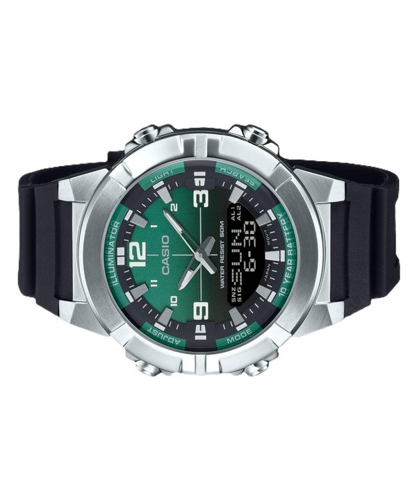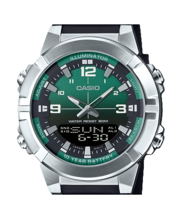 Montre à quartz analogique numérique Casio AMW-870A-3AV pour homme avec bracelet en résine et cadran vert