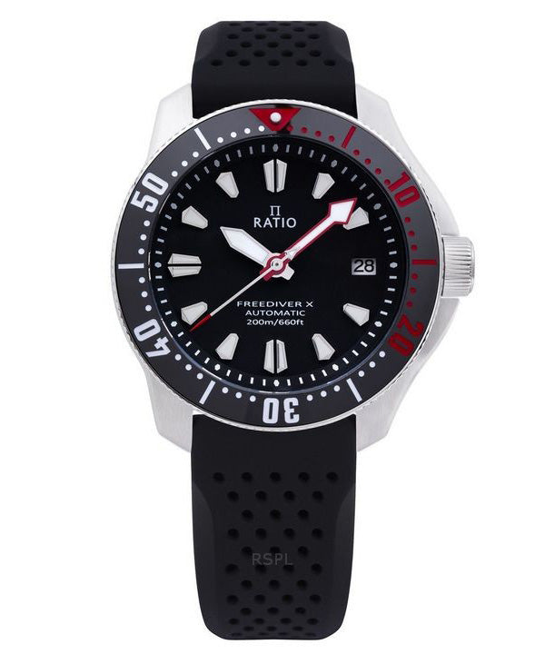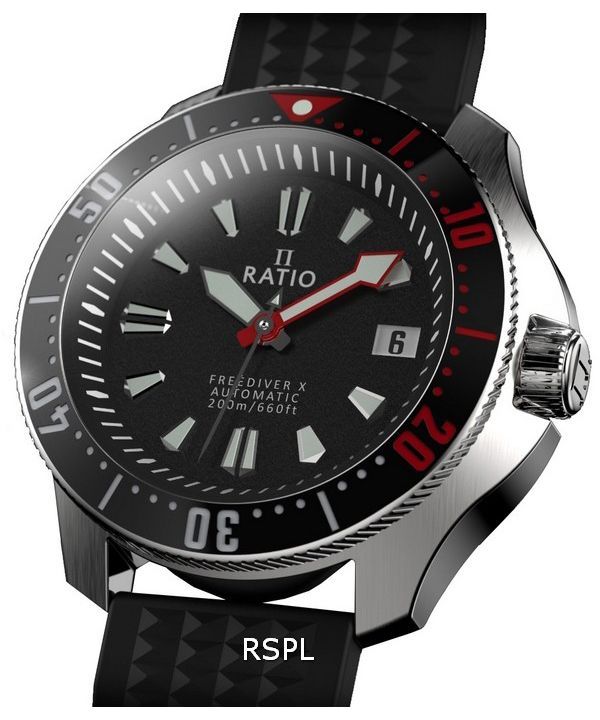 Montre Ratio FreeDiver X Marine Black avec incrustation en céramique noire Automatic Diver RTX001 200M pour homme