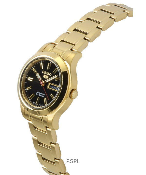 Montre Seiko 5 Classic pour femme, cadran noir, acier inoxydable doré, 21 rubis, automatique, SYMD96K1