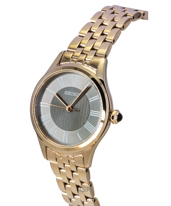 Montre Seiko Classic pour femme, bracelet en acier inoxydable or rose, cadran gris, quartz, SUR614P1