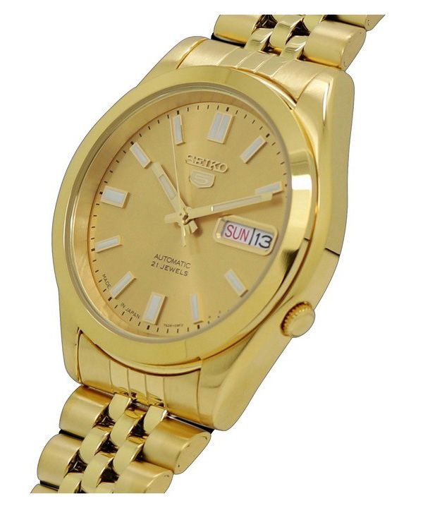 Montre Seiko pour homme, bracelet jubilé 5 tons dorés, cadran doré, 21 bijoux, automatique SNKF82J1