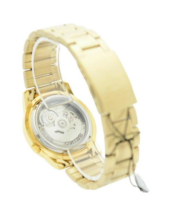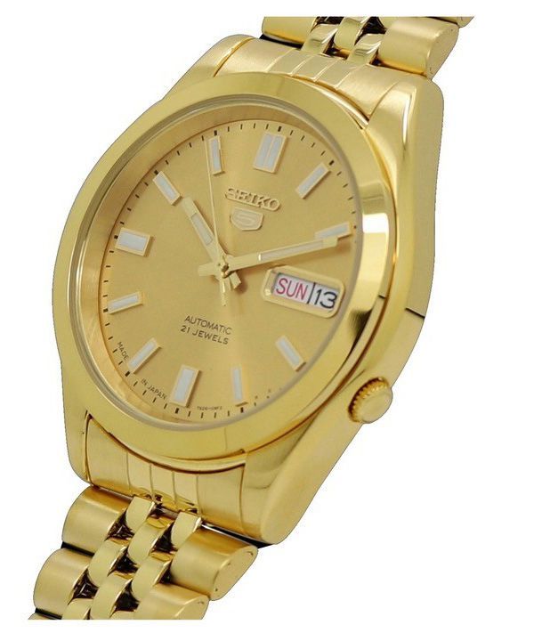 Montre Seiko pour homme en acier inoxydable 5 tons dorés, cadran doré, 21 bijoux, automatique SNKK20K1