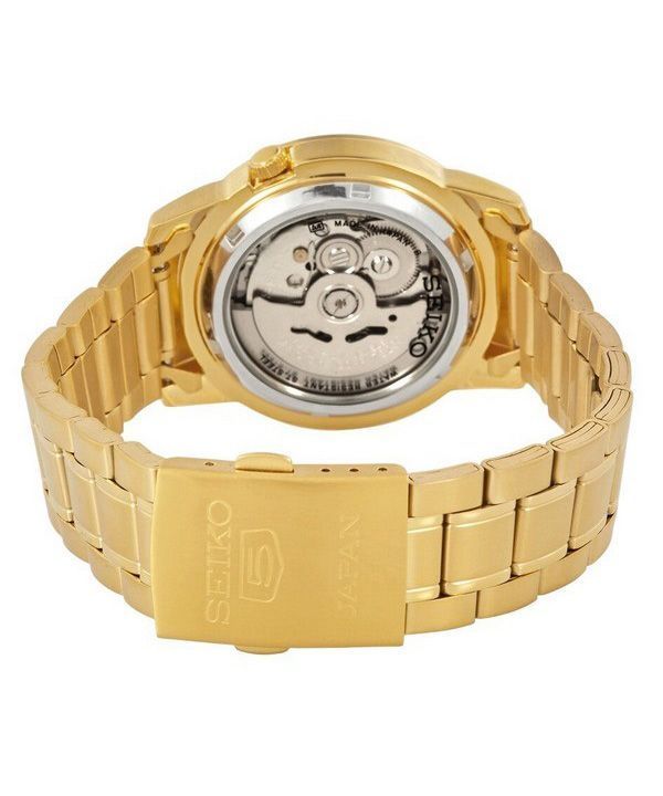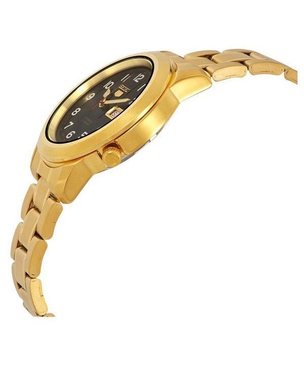 Montre Seiko pour homme en acier inoxydable 5 tons dorés, cadran noir, 21 bijoux, automatique SNKK40J1