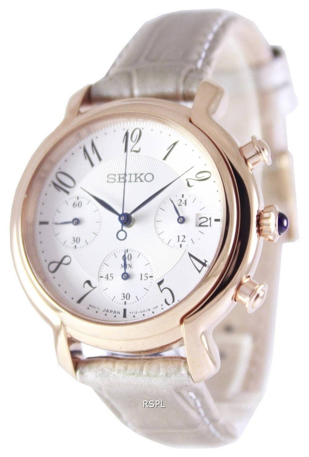 Montre Seiko Quartz chronographe vachette sangle SRW872P1 SRW872P féminin