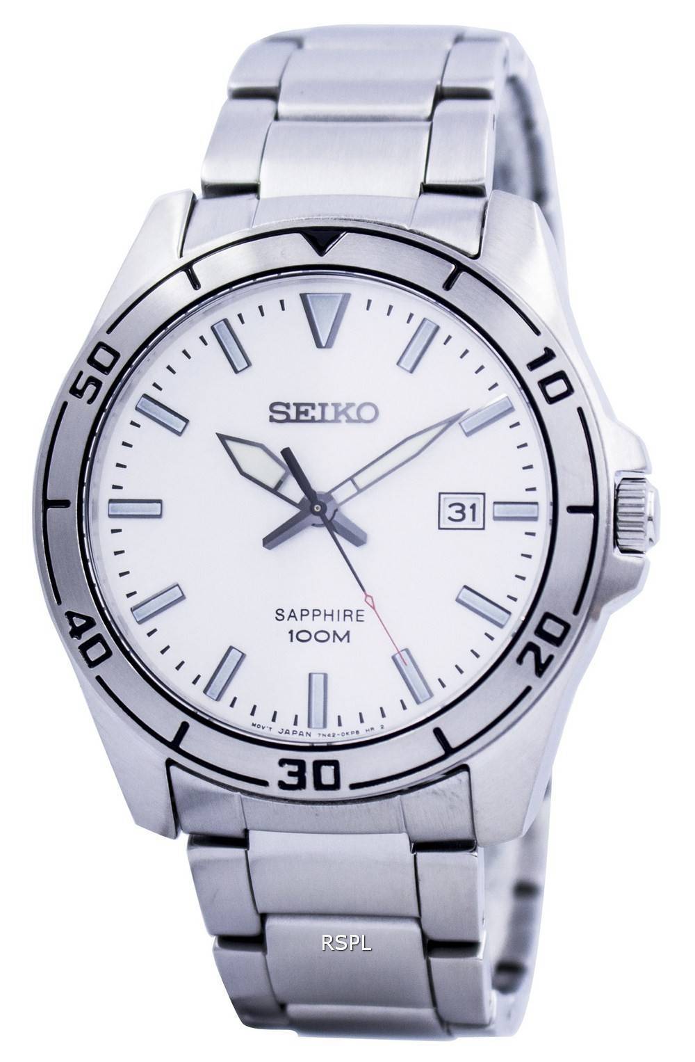 Montre Seiko Quartz verre saphir cadran blanc SGEH59 SGEH59P1 SGEH59P homme
