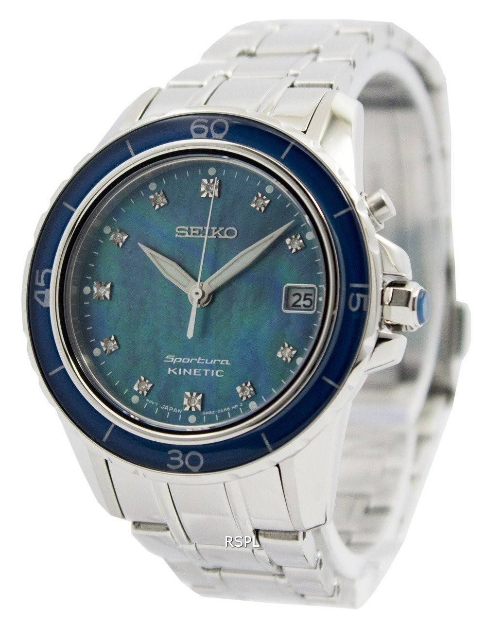 Montre Seiko Sportura Kinetic diamants Dial Indices SKA873P1 SKA873P féminin